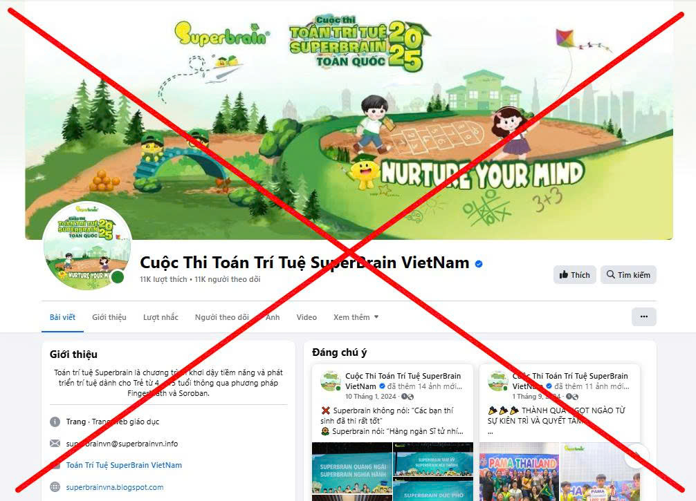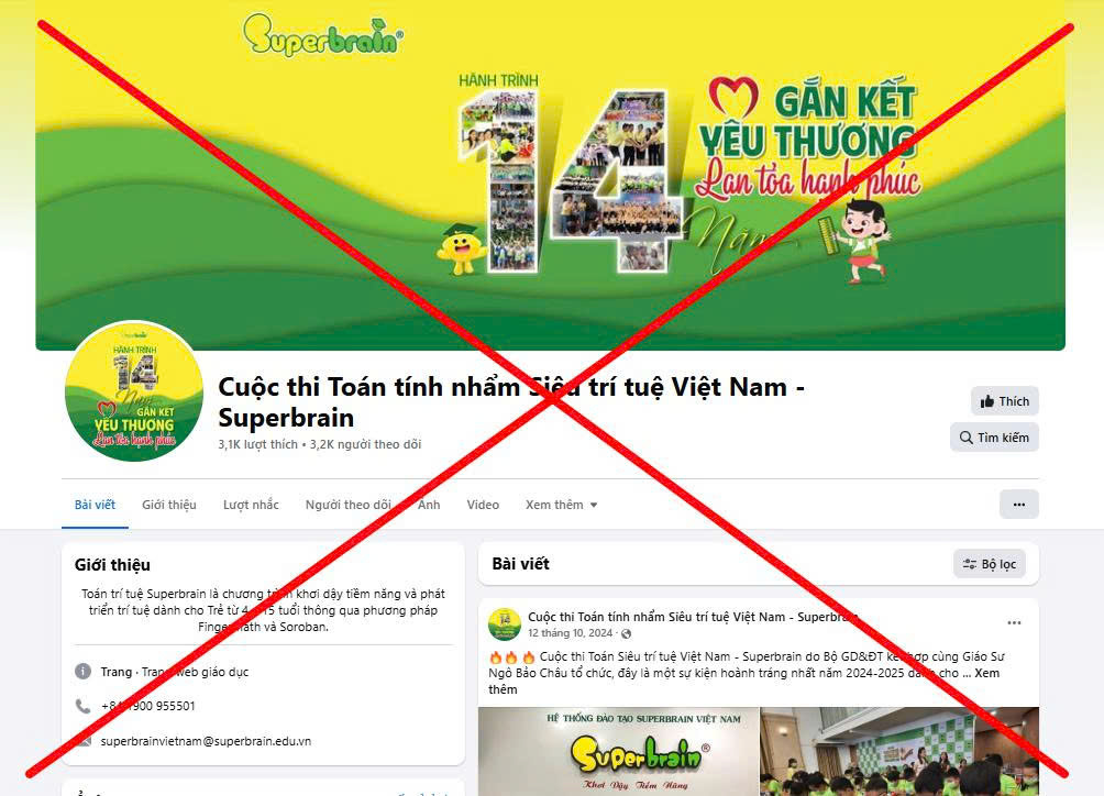 Superbrain vừa phát hiện một fanpage giả mạo hoạt động công khai dưới tên: “Cuộc Thi Toán Trí Tuệ SuperBrain Việt Nam”.