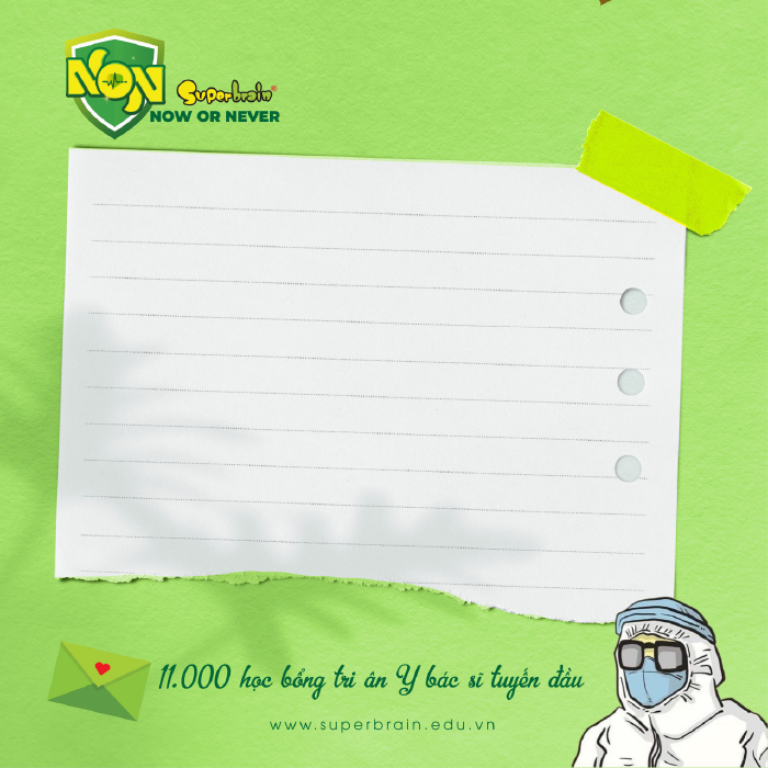 - Hình thức: Viết lời cảm ơn đến Y bác sĩ tuyến đầu, hoặc viết thư cho con của Y bác sĩ. Chụp hình thông điệp cảm ơn, đưa lên fanpage cơ sở Superbrain, kèm theo hashtag của chương trình