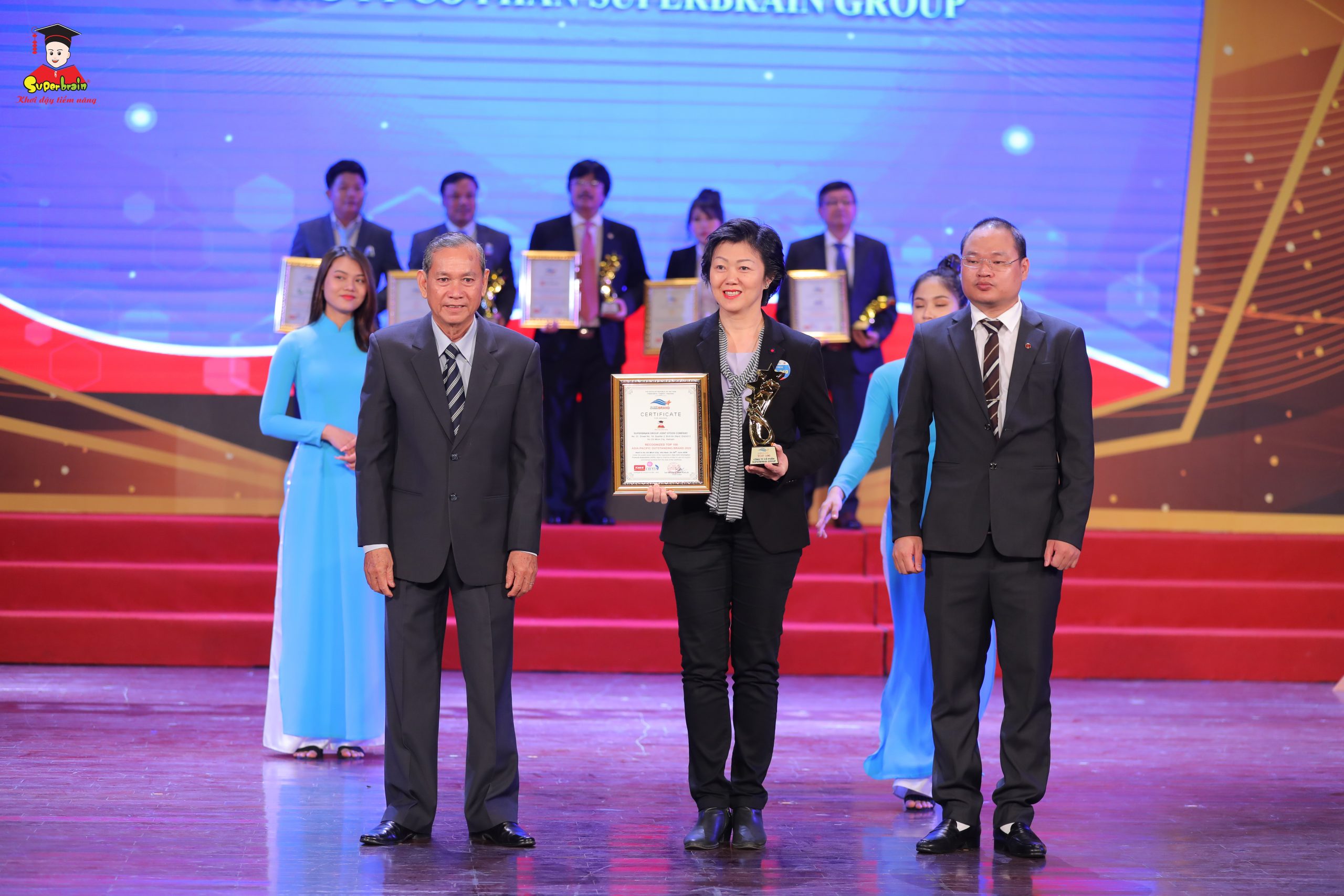 Vào ngày 20/06/2020, tại Nhà hát Quân đội khu vực phía Nam, Superbrain Việt Nam vinh dự được trao danh hiệu “TOP 100 Thương hiệu Tiêu biểu Châu Á – Thái Bình Dương 2020” (Top 100 Asia Pacific Outstanding Brand 2020).