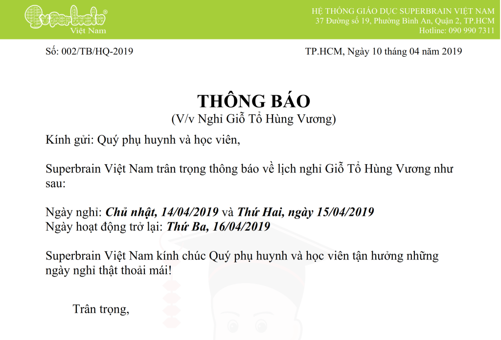 thong bao nghi le gio to hung vuong superbrain vietnamNGHỈ GIỔ TỐ HÙNG VƯƠNG 2019